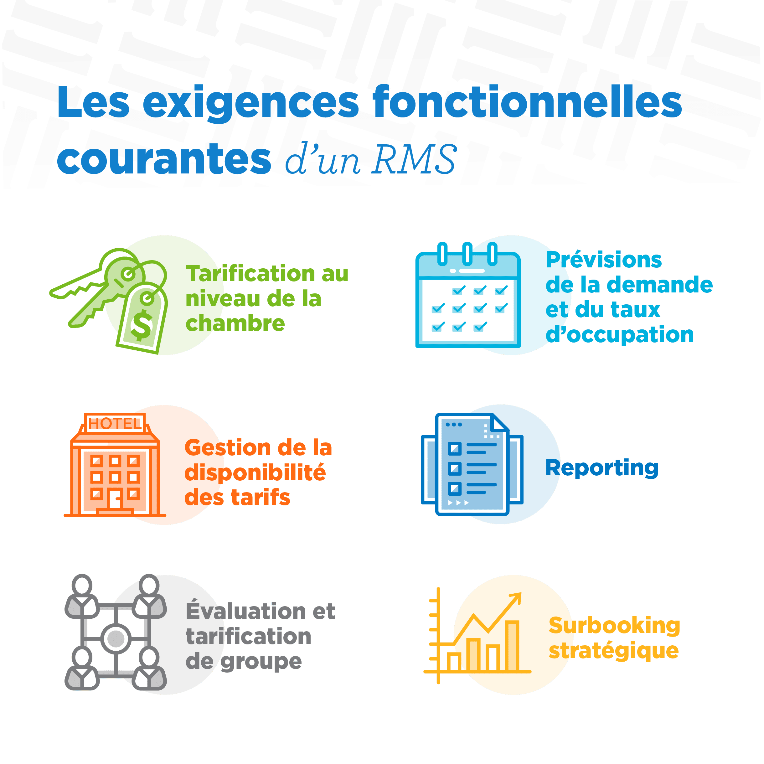 Alors, quelles sont les exigences fonctionnelles que vous pourriez rechercher dans un système de revenue management ?